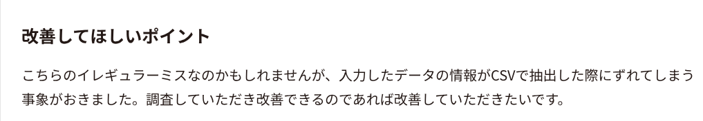 一方で、ラクリスには改善が求められる点も指摘されています。代表的なのが、CSV出力時に生じる表記ゆれやデータの不一致です。例えば企業名に余分なスペースが含まれる、電話番号が異なるなどのケースがあり、そのまま社内システムに取り込むと整合性を取る作業が必要になります。