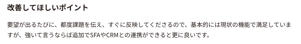これらの要素が組み合わさることで、ツール導入後すぐに成果を実感しやすく、営業活動の基盤として定着しているのが大きな特徴です。